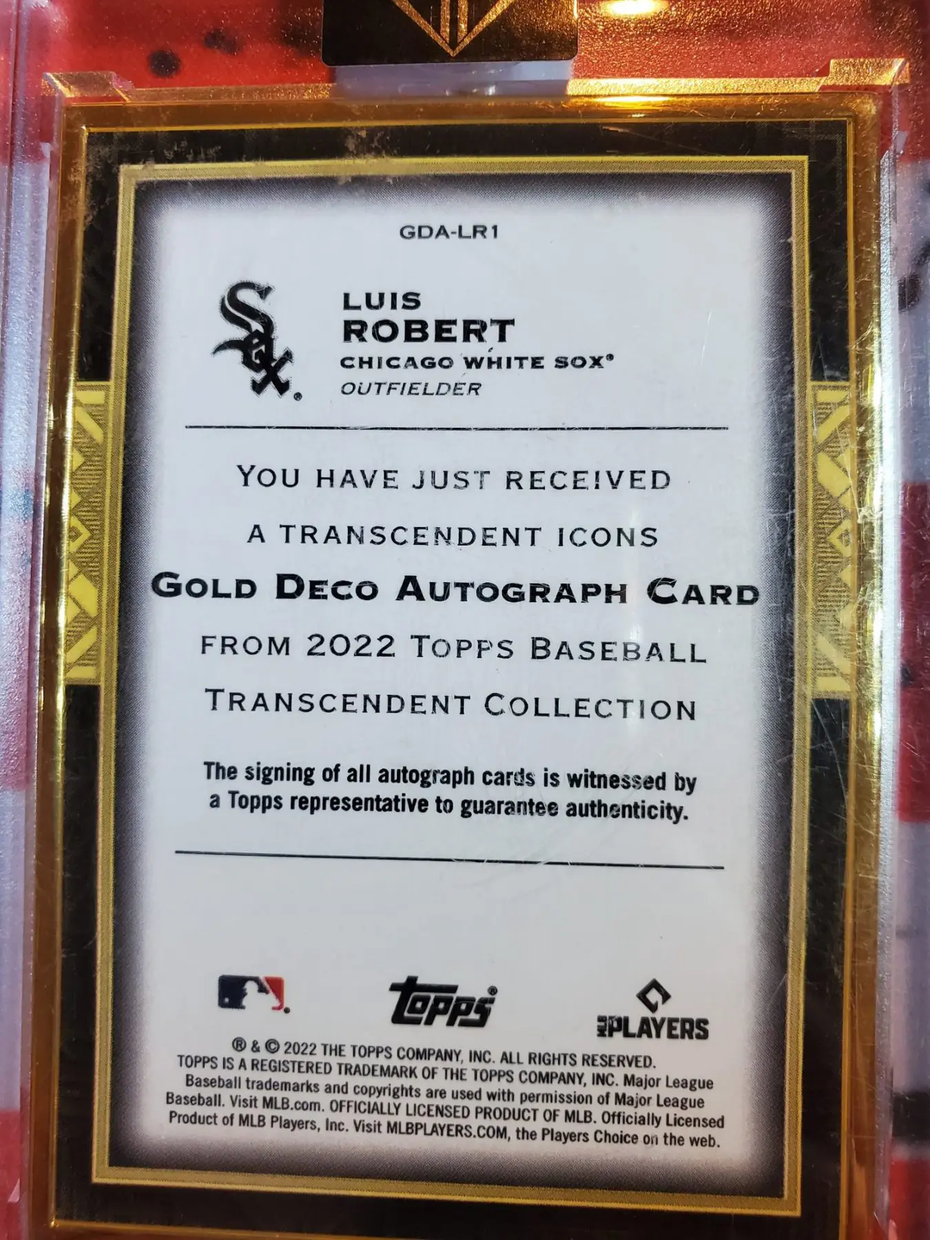2022 TOPPS TRANSCENDENT COLL. LUIS ROBERT GOLD DECO AUTOGRAPH CARD 1/1 Baseball Cards