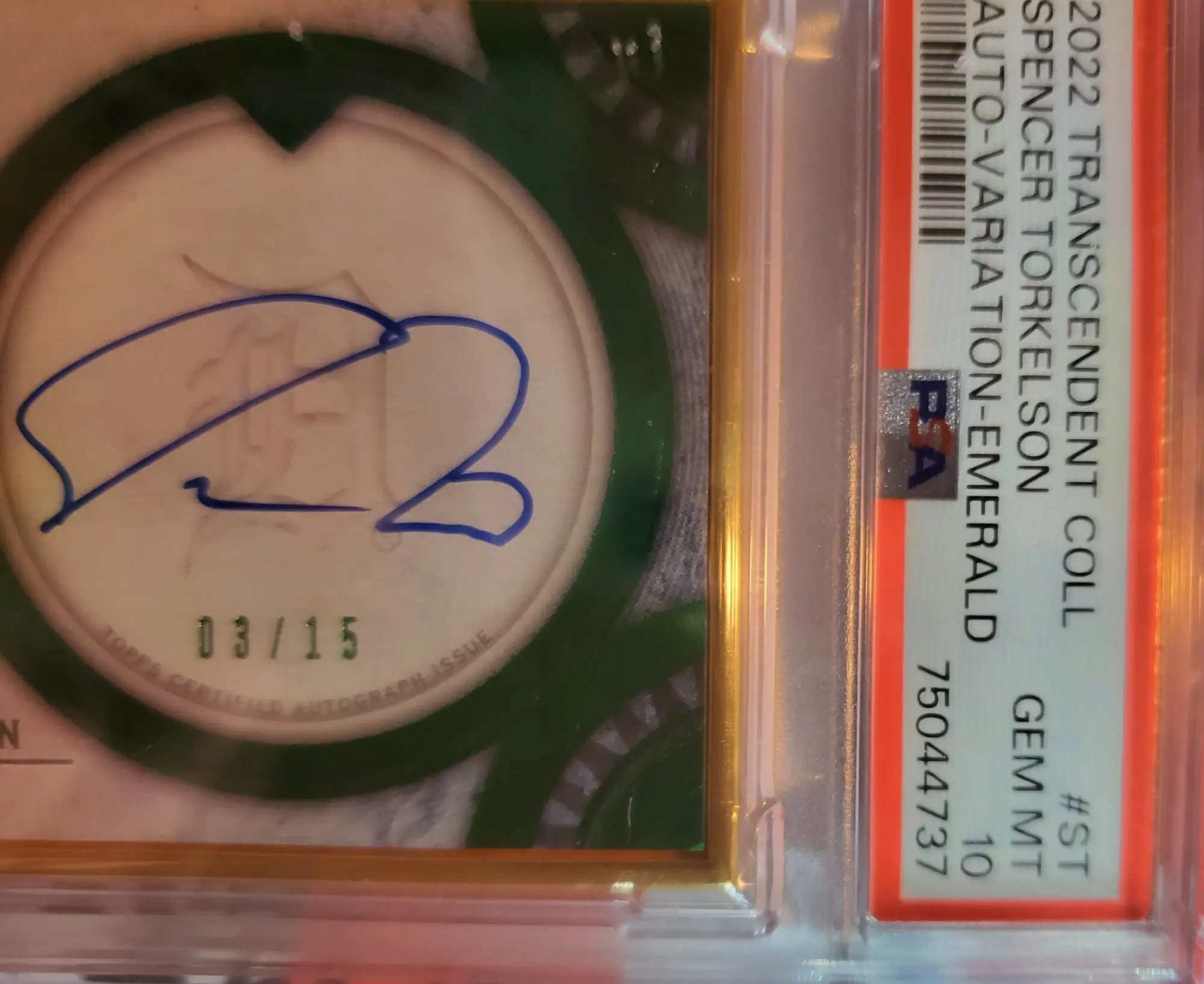 2022 Topps Transcendent Collection Spencer Torkelson Auto variation Emerald/15 PSA10