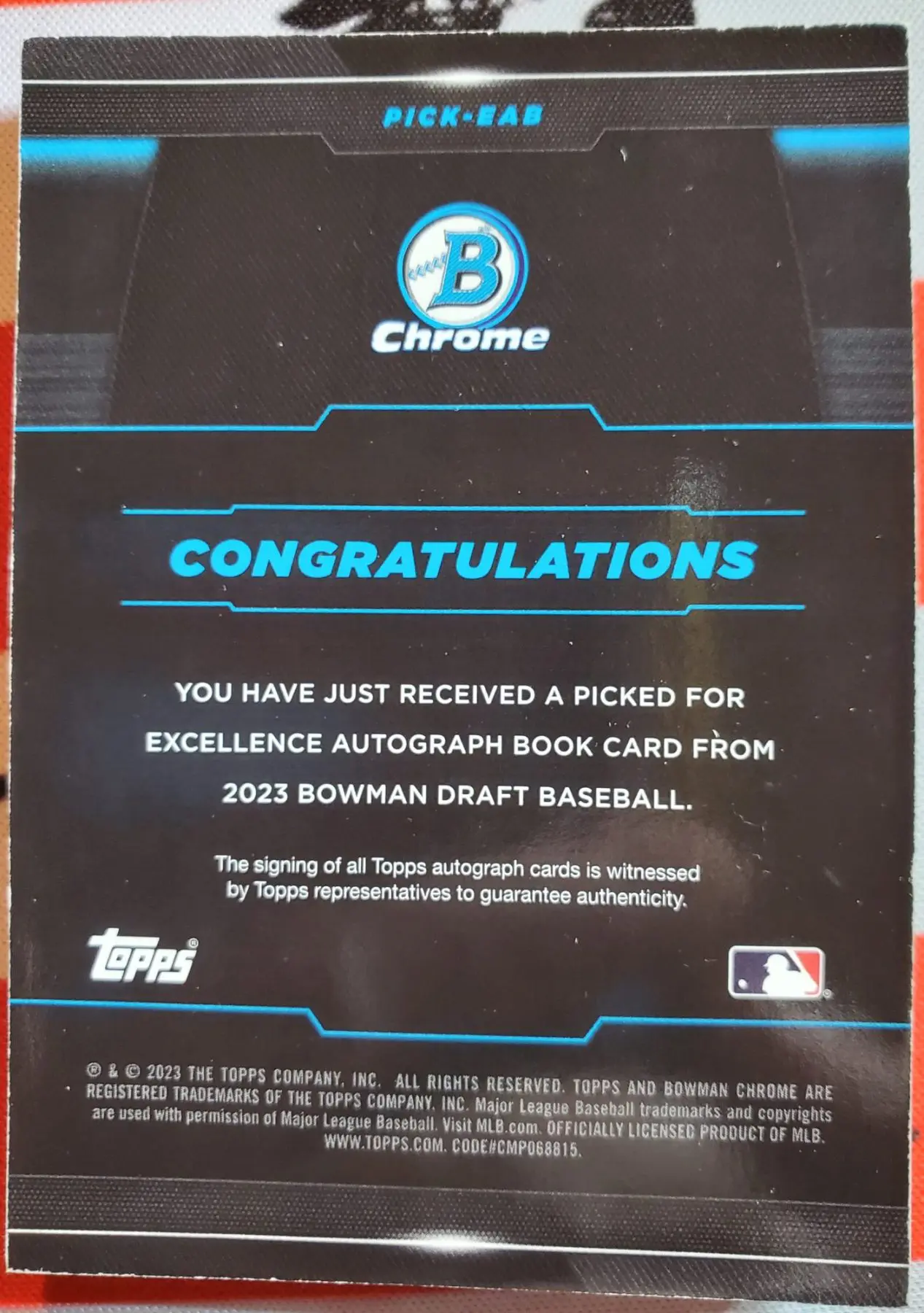 2023 Bowman Chrome Picked For Excellence Autograph Booklet