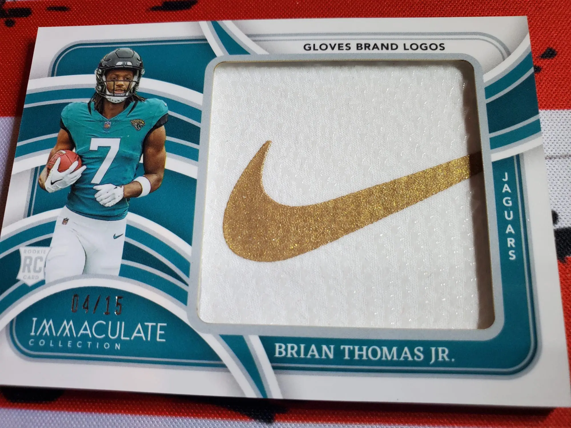 2024 Immaculate Collection Football Brian Thomas Jr. Gloves Brand Logo RC 4/15