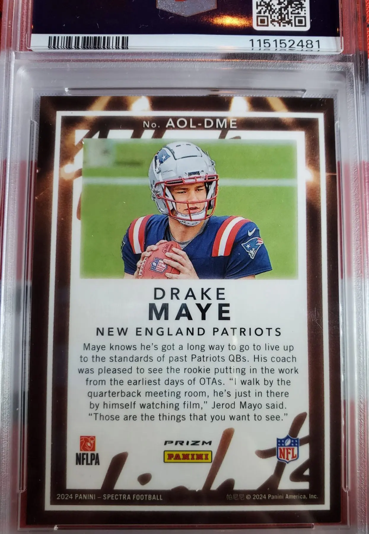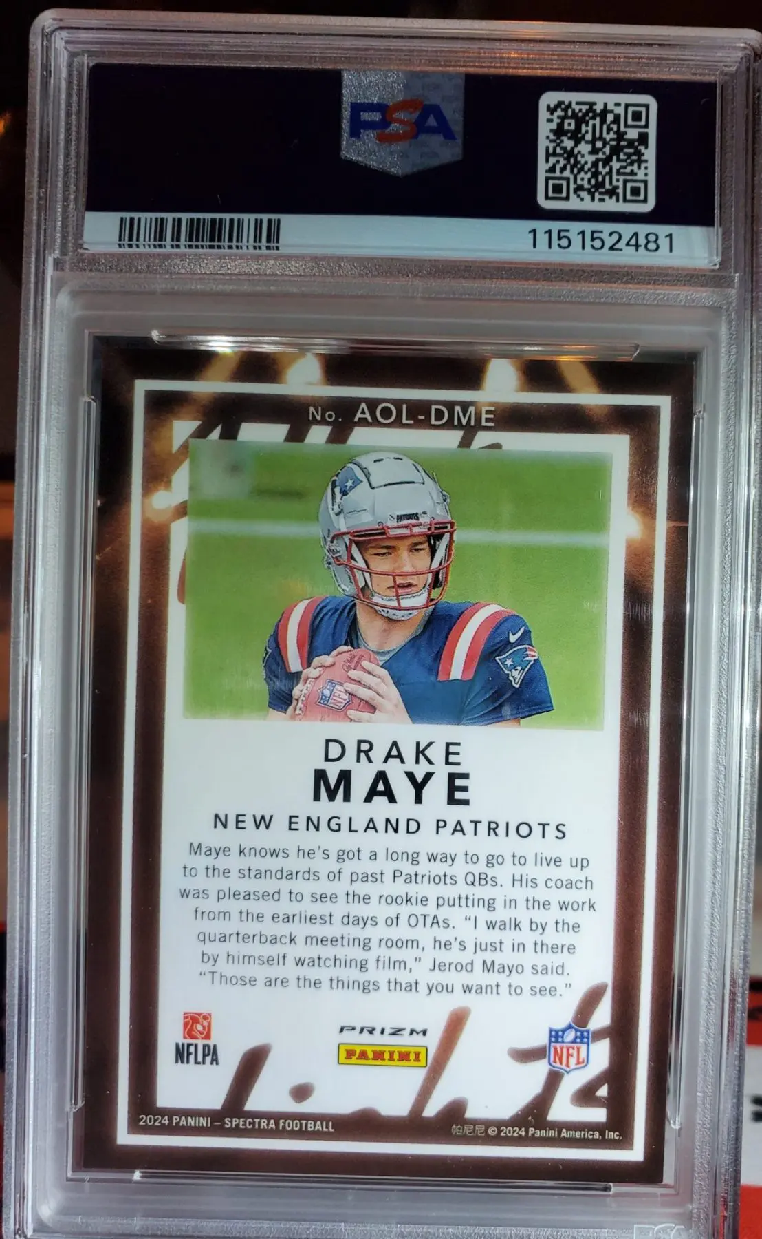 2024 Spectra Drake Maye Rookie Card All of the Lights PSA 10.