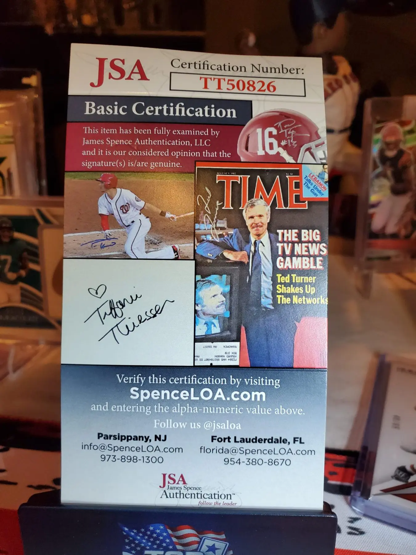 Terrific card. Awesome. Big beautiful autograph. Great condition. Great price. Packaged with care. Quick ship. So very pleased with this purchase and will definitely be back to this seller again for future purchases.